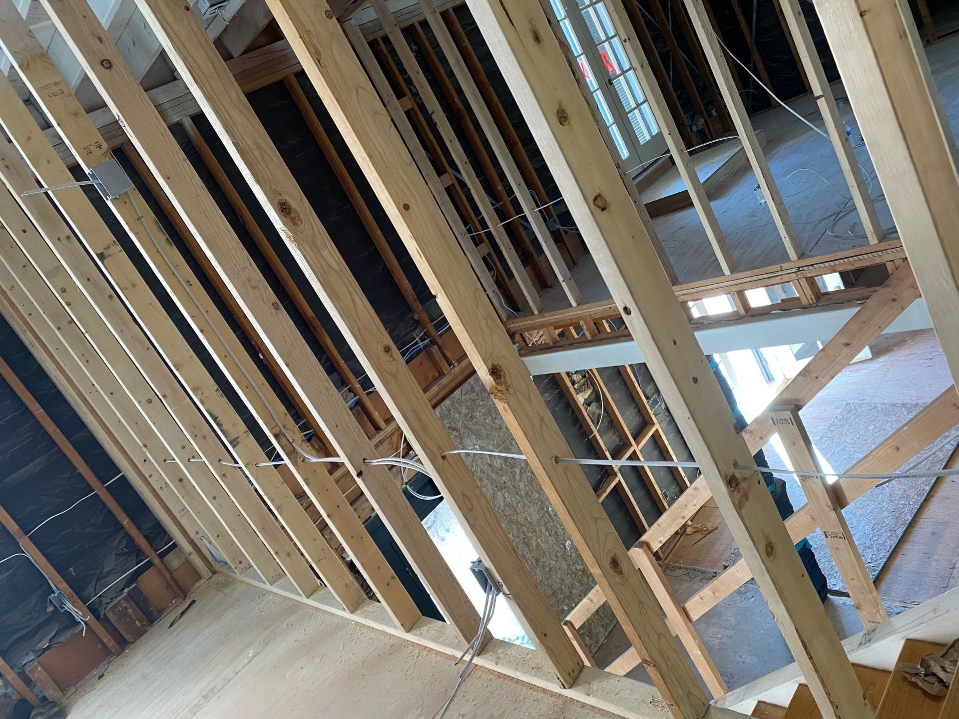 We run wire inside the wall and install the proper boxes for the receptacles, lighting, fans, switches and 3way switches.